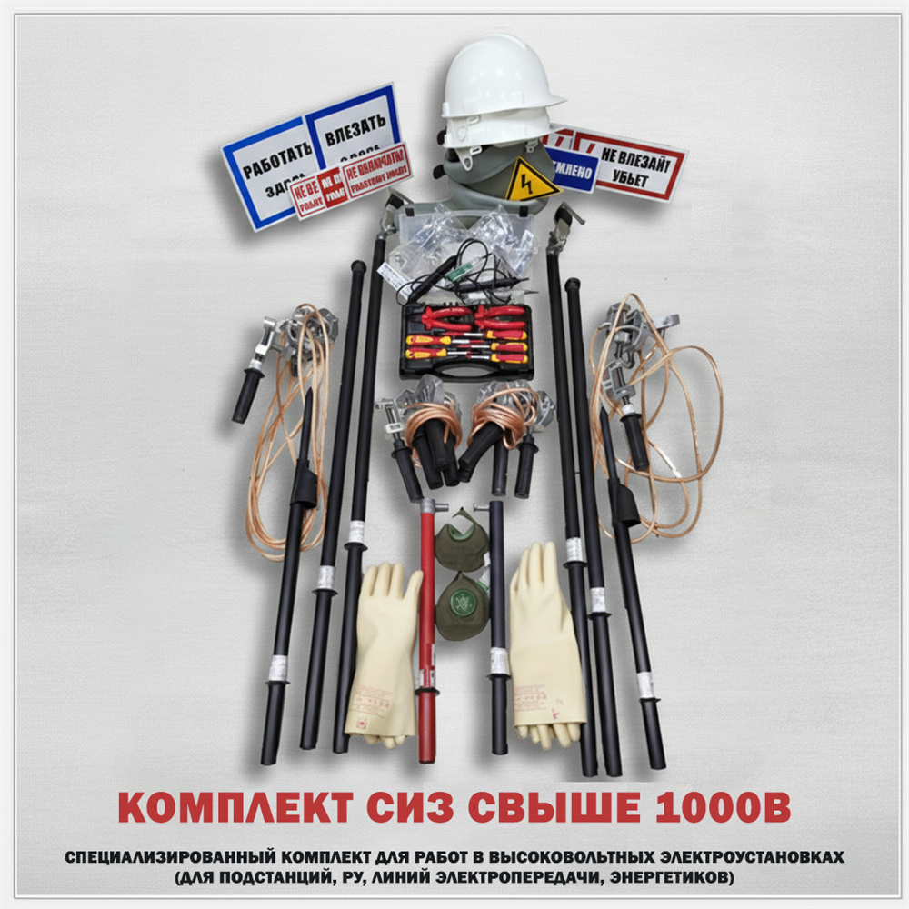 Профессиональный комплект средств защиты для работы в электроустановках напряжением свыше 1000 В. Подходит для эксплуатационных бригад, энергетических предприятий, подрядных организаций и объектов повышенной ответственности, где критично обеспечить безопасность персонала и соответствие нормативным требованиям.